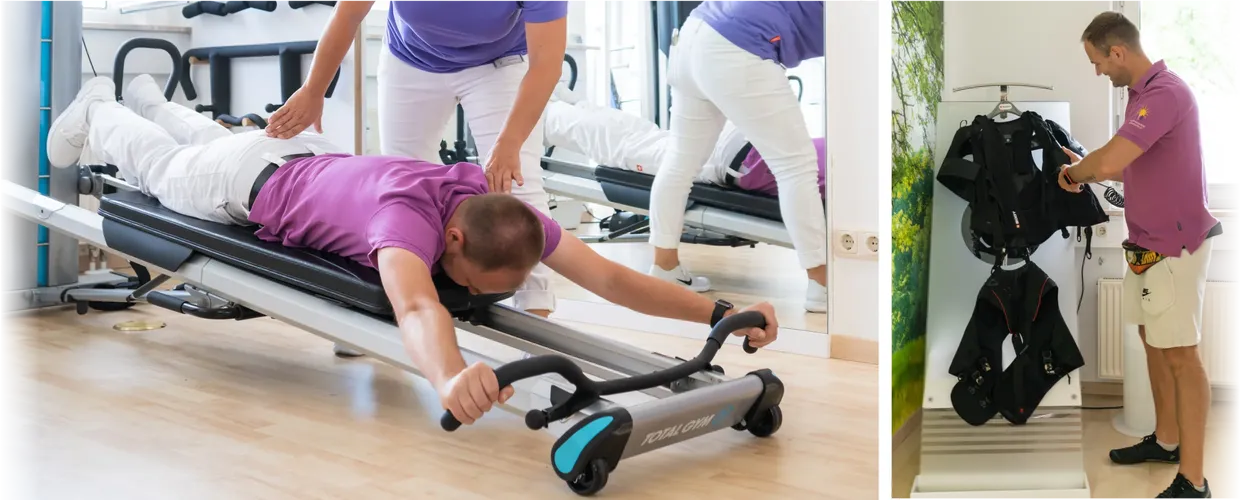 Auf unserer funktionell ausgestatteten und modernen Trainingsfläche haben Sie die Möglichkeit, den Grundstein für ein lang anhaltendes, positives Therapieergebnis zu legen. Ihr individuelles Trainingsprogramm mit gezielten Übungen ist ein wichtiger Bestandteil unserer Behandlungsphilosophie. Wir sind überzeugt, dass nur so ein nachhaltiger Behandlungserfolg erzielt werden kann.