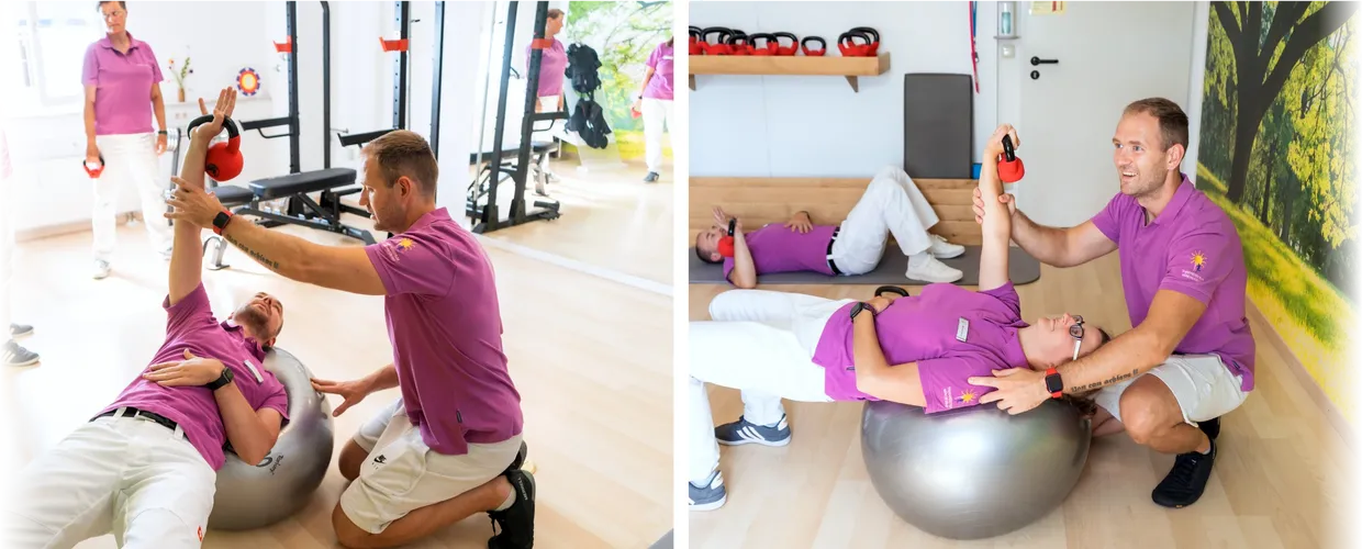 Ziel der Therapien ist es, in einem ersten Schritt eine optimale Bewegungs- und Schmerzfreiheit herzustellen. Danach erfolgt das Einüben bzw. Optimieren von Aktivitäten des täglichen Lebens wie z.B. Gehen, Sitzen, Heben oder Waschen und Anziehen. Zum Einsatz kommen verschiedene Therapieformen, wie z.B. Manuelle Therapie, Krankengymnastik, Krankengymnastik an Geräten, Bobath-Therapie, Atemtherapie und Behandlungsverfahren bei Beckenbodeninsuffizienz.